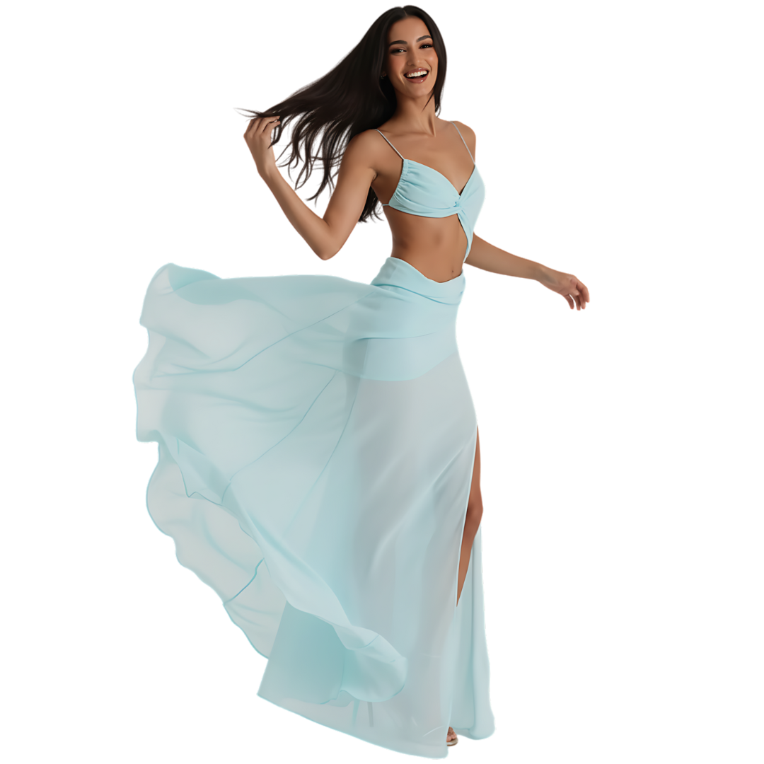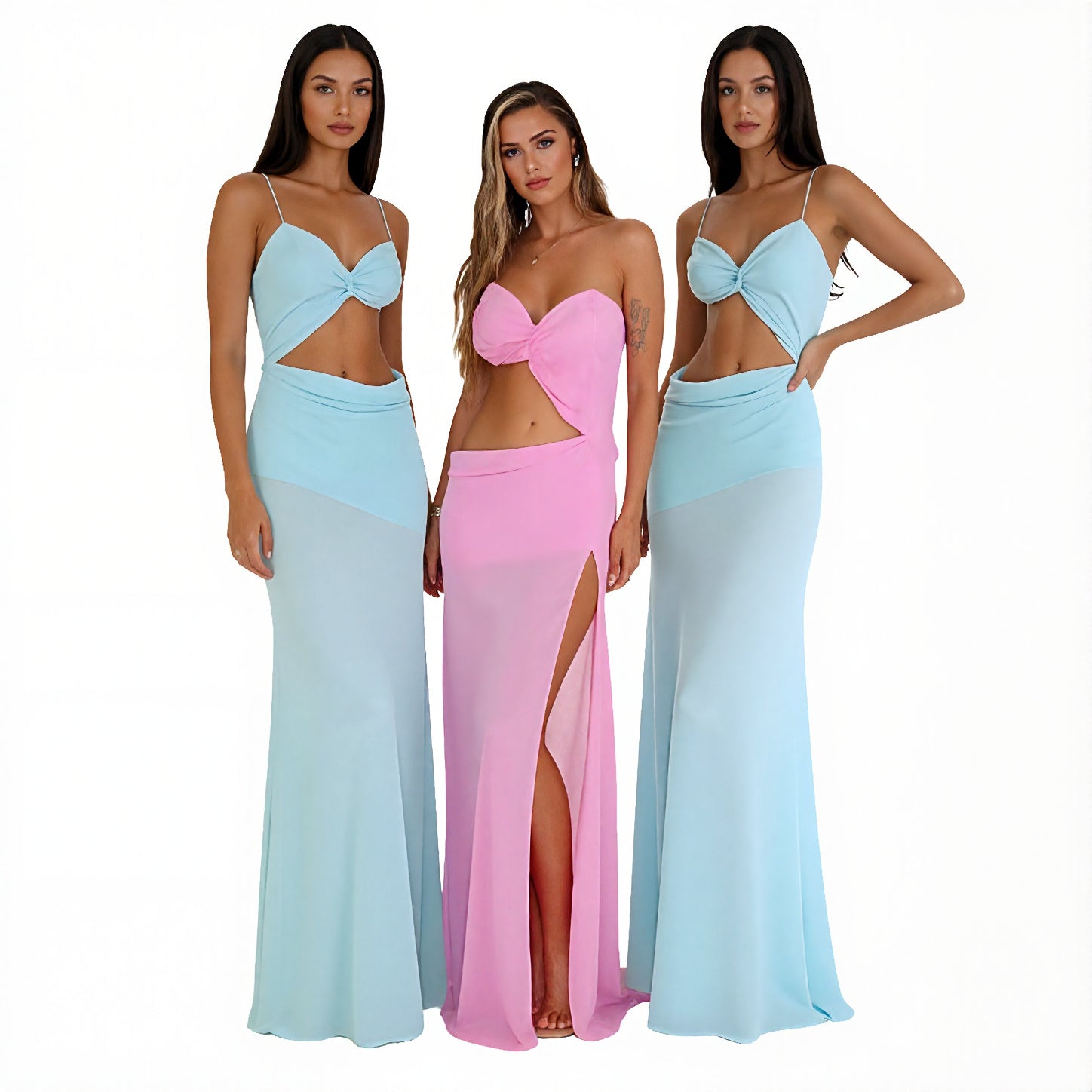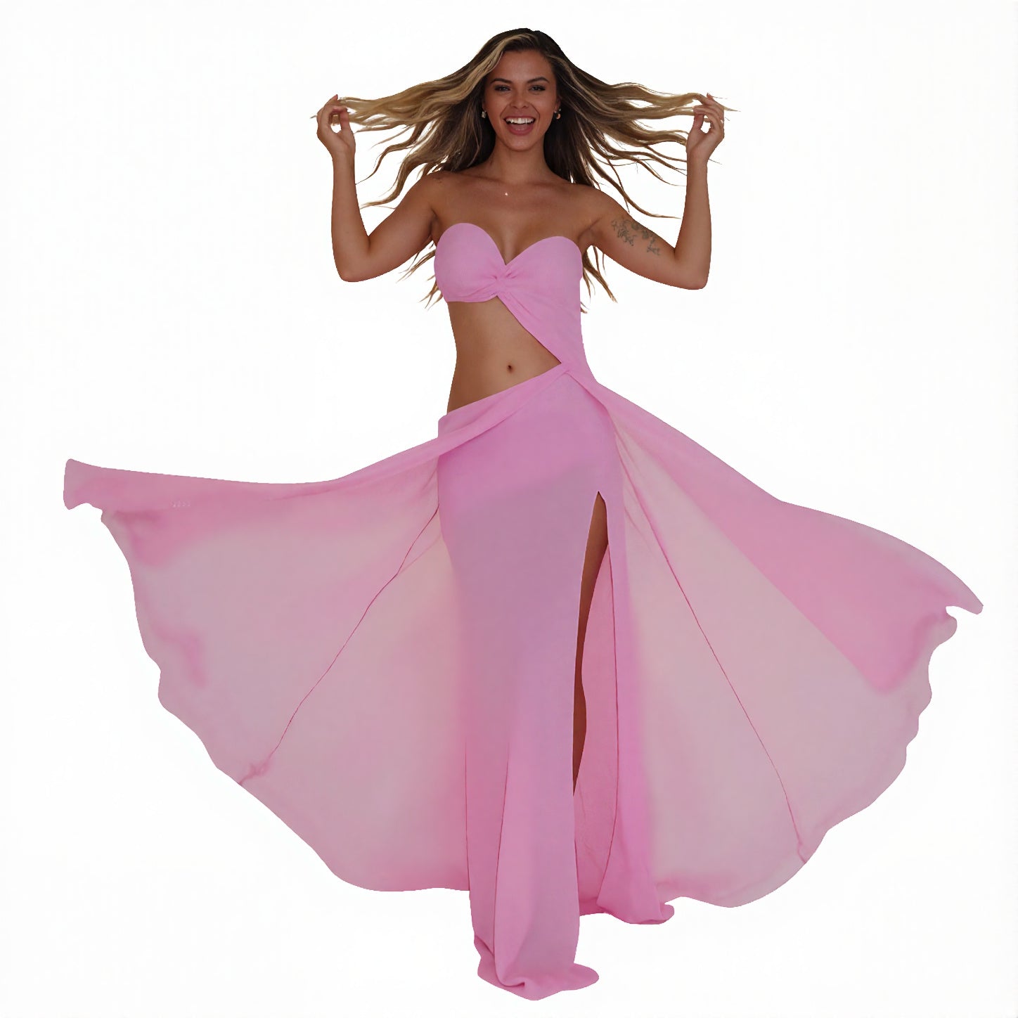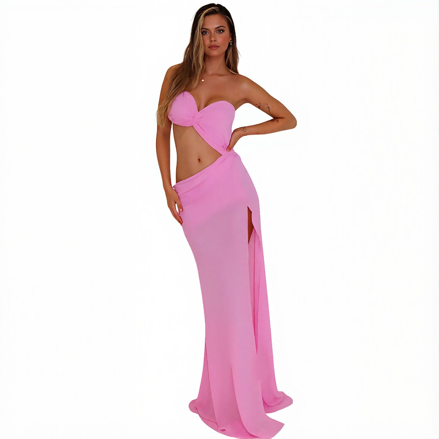 The unique side drape and statement split create a graceful, runway ready silhouette that flows elegantly and turns heads wherever you wear it.